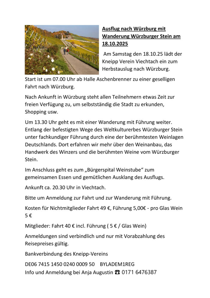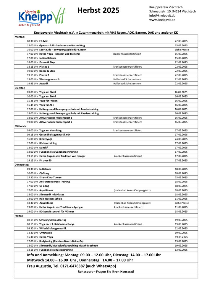 Info und Anmeldung: Tel. : | WhatsApp 0171/6476387 | E-Mail info@kneippvit.de